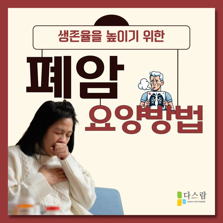 이 폐암 생존율은 여느 암종에 비해서도 생존율이 낮은 편입니다. 때문에 항암수술 후엔 일반적인 가정에서 생존율을 높이는 암요양 프로그램을 시행하기란 쉽지 않죠. 저희 다스람요양병원은 폐암 환자분들의 생존율을 높여주는 체계적인 관리로 암환자요양병원으로 자리 잡고 있는데요, 환자분들이 오직 건강 회복에만 집중하실 수 있도록 최선을 다하고 있어요.