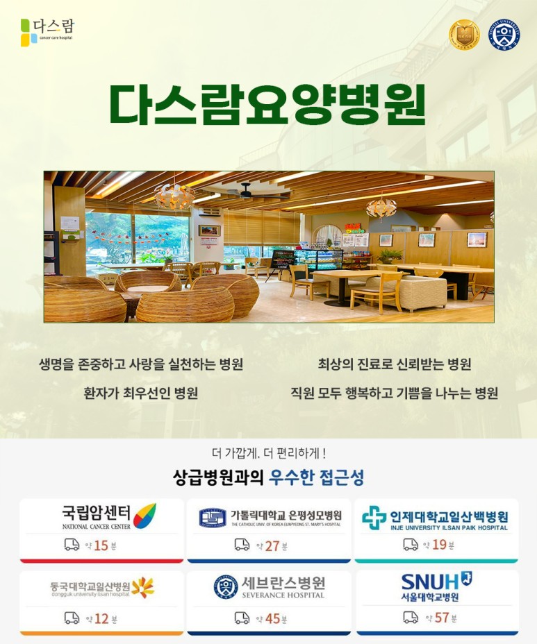 파주암병원 다스람요양병원이 내 가족을 케어한다는 마음으로 암환우분들의 투병생활에 함께 하겠습니다.