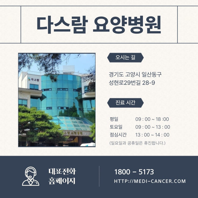 안녕하세요. 파주암요양병원 찾으실 때 떠올려 주시는 다스람요양병원입니다.