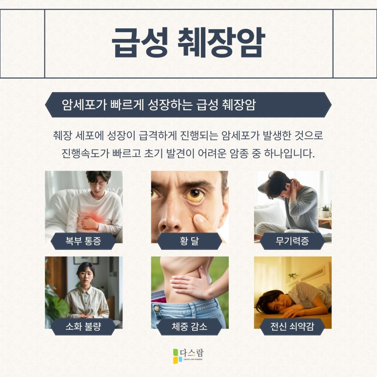 저희 다스람요양병원에서는 급성 췌장암 환자분들의 신체적 정신적 회복을 체계적으로 관리하여 생존율을 높이고, 삶의 질을 개선하는 데 최선을 다하고 있습니다. 이외 추가적인 문의사항이 있다면 파주암요양병원으로 찾아주시는 저희 다스람요양병원을 내원하여 상담받아보시기 바랍니다.