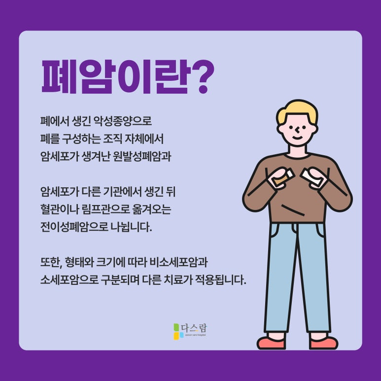 폐암은 우리나라에서 발병률과 사망률이 높은 암 중 하나로, 여러 위험 요인과 함께 생활 습관이 주요 원인이 돼요. 간단한 기침이나 가래 증상 뒤에 숨겨진 위험성을 놓친다면 적절한 치료 시기를 놓칠 수도 있죠. 이번 글에서는 다스람요양병원과 함께 폐암의 특징과 치료 과정을 알아보고, 전문적인 관리의 중요성을 강조하고자 해요.