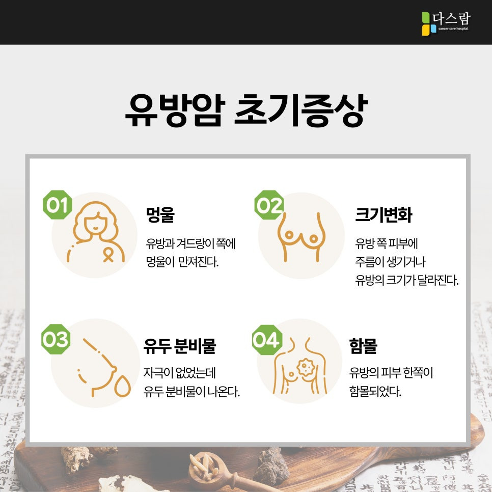 여성들이 각별히 신경 써야 할 건강 문제 중 하나가 유방암입니다. 이는 국내외에서 여성들에게 가장 많이 발병하는 암으로 알려져 있으며, 초기증상이 뚜렷하지 않아 환자분 스스로 이상을 감지해 내는 것이 어렵지만, 조기 발견이 특히 중요한 질환이에요. 오늘은 다스람요양병원과 함께 유방암의 주요 특징과 치료 후 관리법을 살펴보고, 한방치료를 통한 건강 회복 방법에 대해 알아보겠습니다.