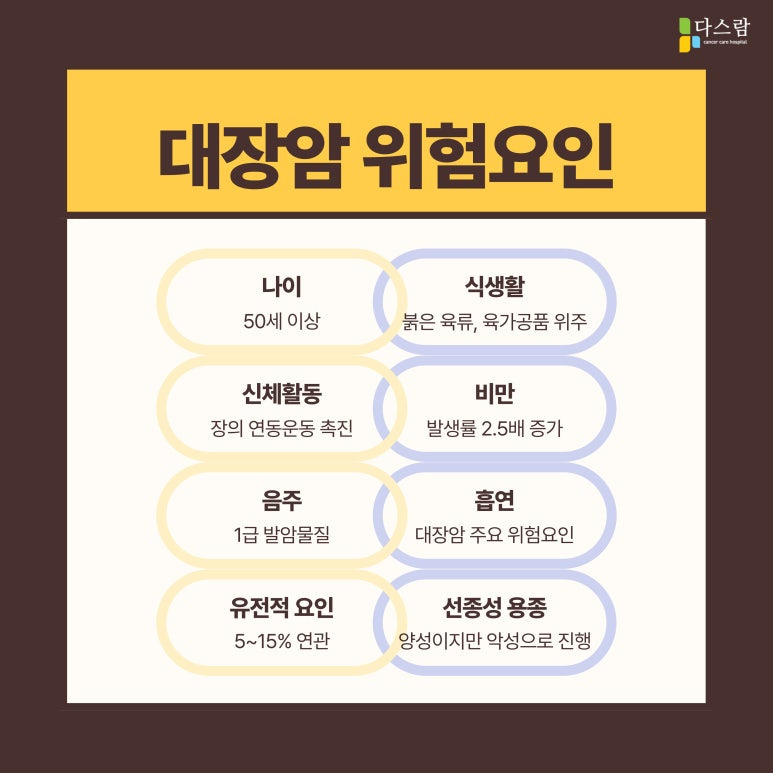 암은 조기에 발견하기 어려운 질환 중 하나입니다. 특히 대장암은 초기 증상이 거의 없어 단순한 소화 불량으로 착각하기 쉬운 암종인데요, 이로 인해 병이 상당히 진행된 후에야 진단받는 경우가 많아 더욱 신경 써야 하죠.
