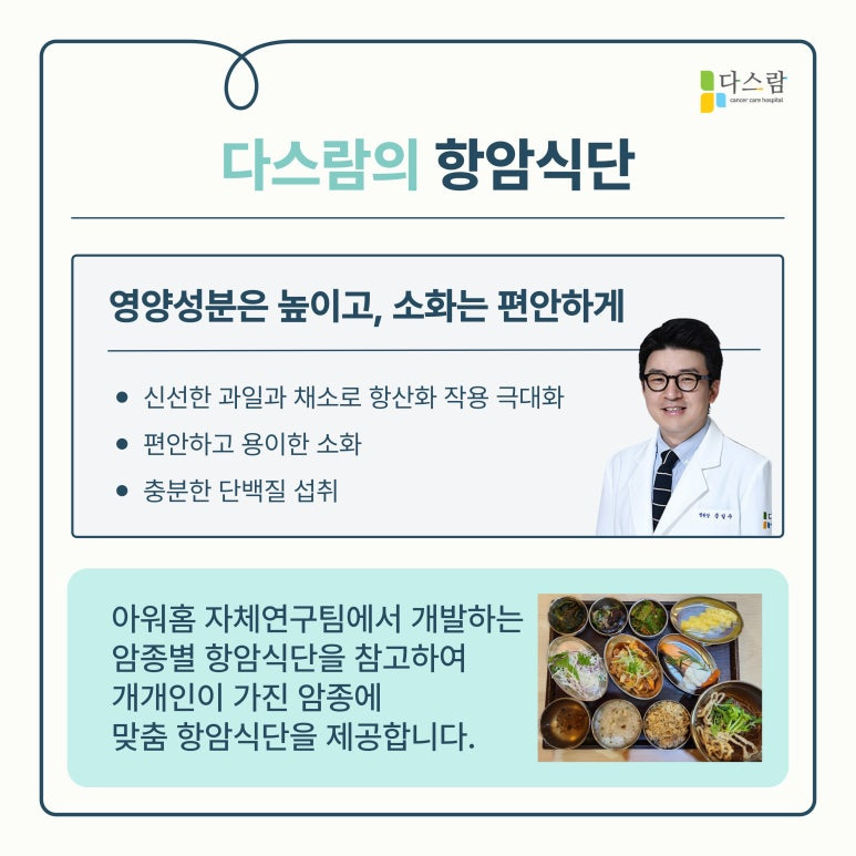 항암 치료를 병행하는 경우에는 면역력이 저하되고, 식욕 감소, 탈모, 구토 등의 부작용이 발생할 수 있는데요, 철저한 관리와 적절한 영양 공급을 통해 부작용을 줄이고 치료 효과를 극대화할 수 있답니다.