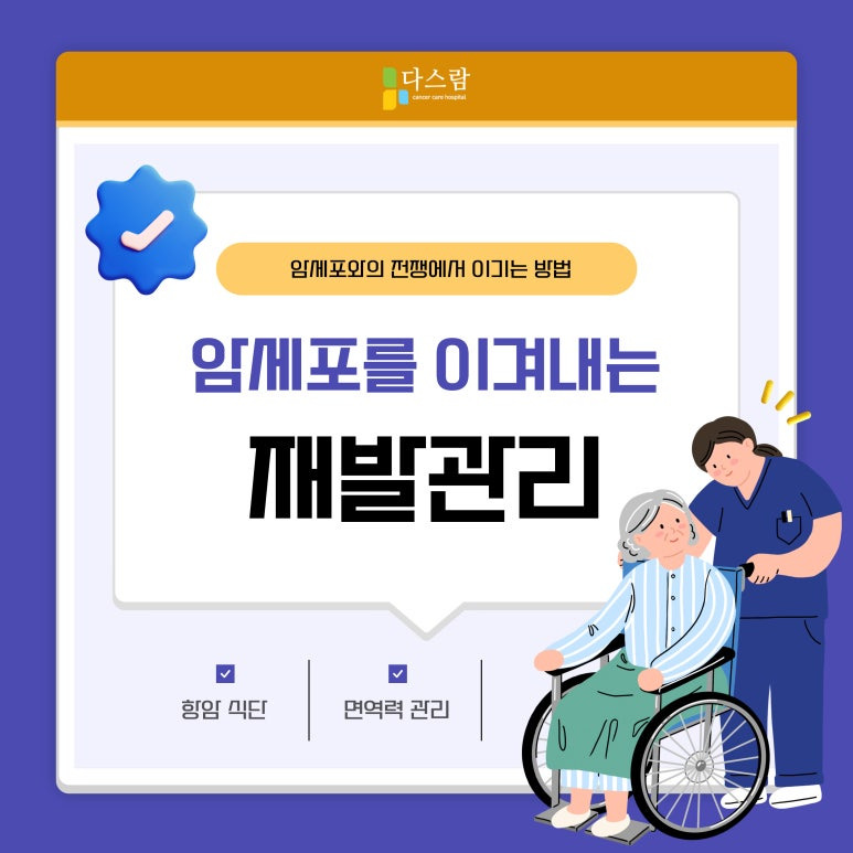 암을 경험한 분들에게 치료가 끝난 후에도 여러 가지 고민이 이어지기 마련입니다. 특히, 암 치료 후 가장 중요한 것 중 하나는 암이 재발하지 않도록 체계적인 관리가 지속된다는 점인데요, 암 치료는 여러 가지 방법으로 이루어지지만, 치료 후 재발을 예방하는 관리가 매우 중요해요. 오늘은 암치료병원으로 찾아주시는 저희 다스람요양병원과 함께 암 재발을 막는 방법과 면역 치료에 대해 자세히 알아보겠습니다.