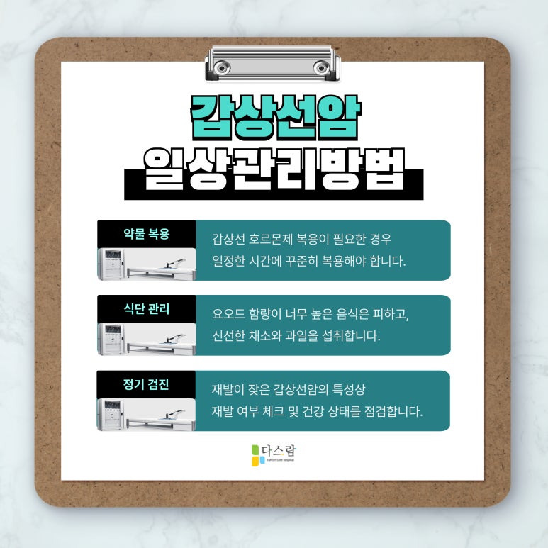 갑상선암은 치료 후 관리가 정말 중요한 질환이에요.
