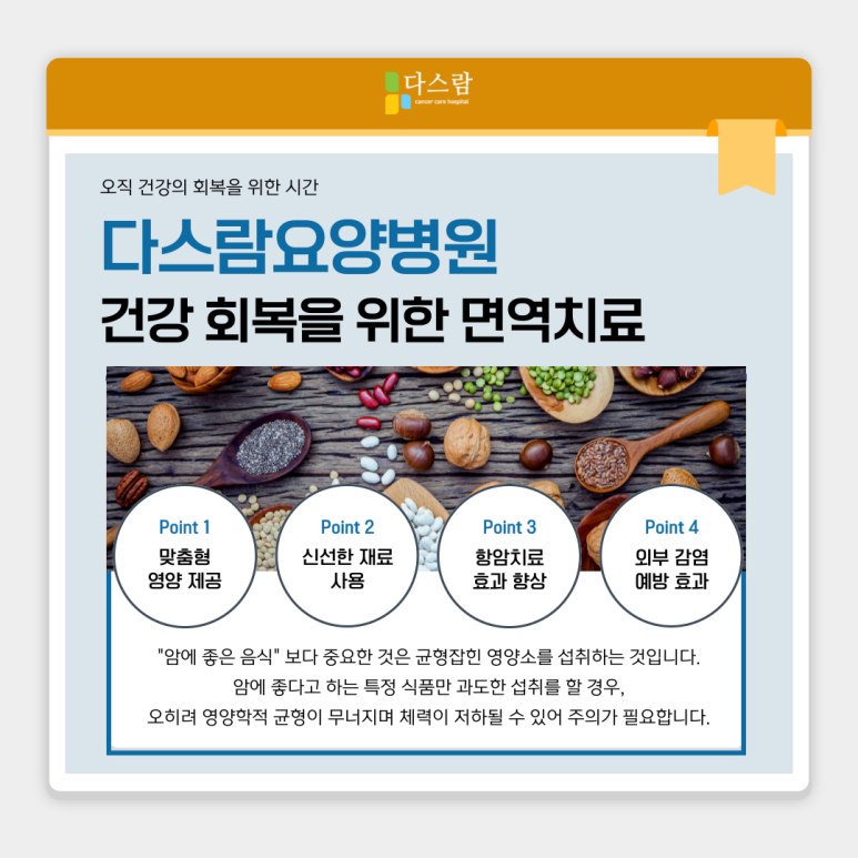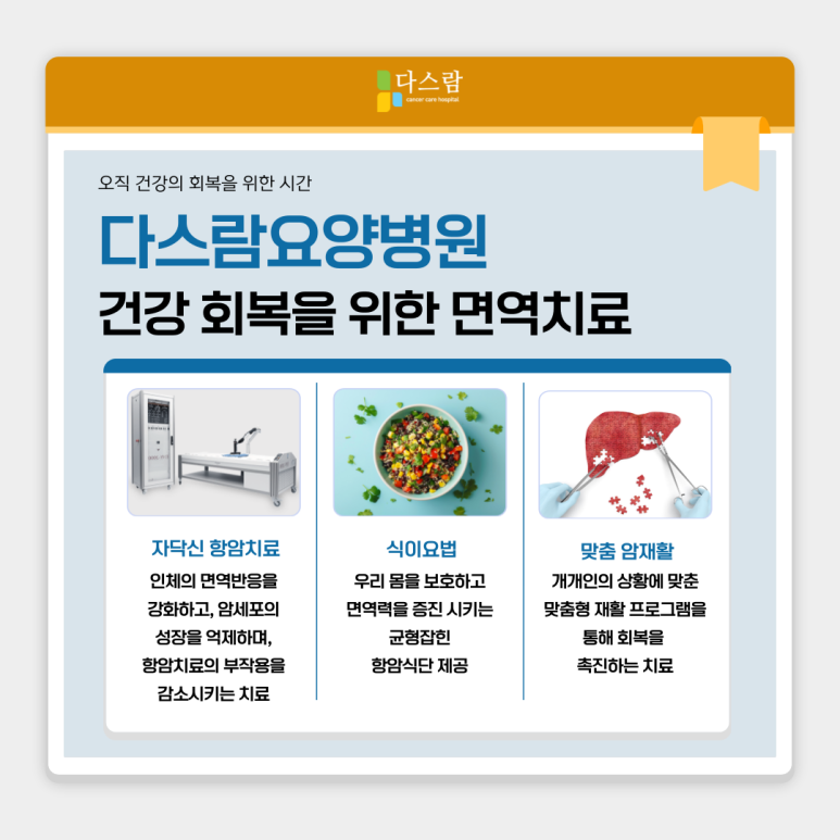 암 치료가 끝난 후에도 재발 가능성은 완전히 사라지지 않습니다. 그렇기 때문에 이후의 관리가 무엇보다 중요합니다. 특히 면역 기능 회복과 신체의 전반적인 균형을 유지하는 통합적 접근이 필요해지는데요, 이를 위한 방법 중 하나가 바로 통합 암 면역치료입니다.