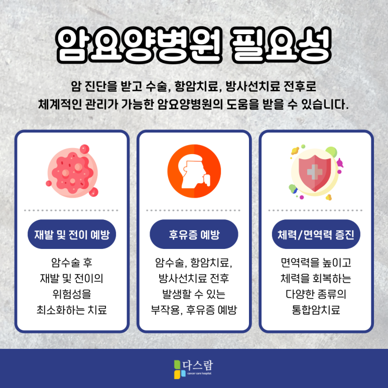 오늘 김포암요양병원 다스람요양병원에서는 수술 후 회복을 위한 요양병원의 역할, 통합 치료 방법, 치료 환경 체크리스트, 통증 및 항암치료 방식, 대형 병원과의 연계 필요성까지 한눈에 정리해보겠습니다.