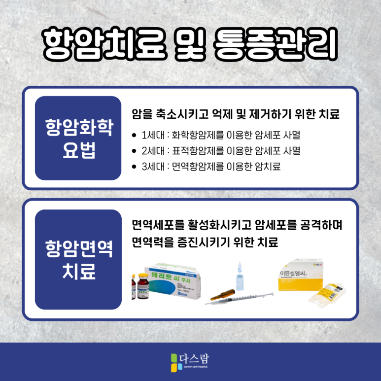 수술 후 재발 위험이 있는 경우, 약물로 암세포의 성장을 억제하는 방법입니다. 그러나 부작용으로 피로감, 오심, 면역력 저하가 동반될 수 있어 체력 보충과 면역 관리가 필수입니다.