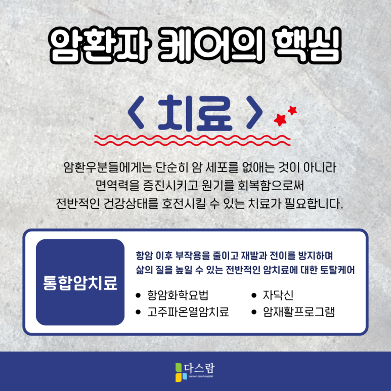 항암치료, 통증 조절, 재활, 식이요법 등이 연계되어야 합니다.