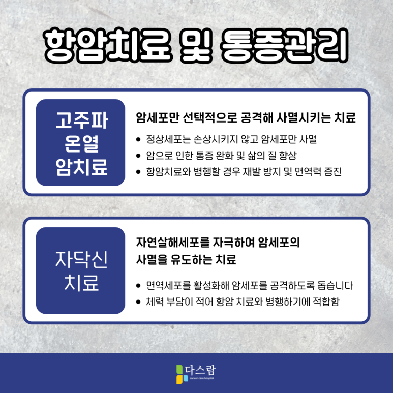 수술은 단지 암세포를 제거하는 과정일 뿐, 남아있는 암세포의 위험, 체력 저하, 면역력 약화 등은 여전히 우리 몸에 부담을 주고 있습니다.