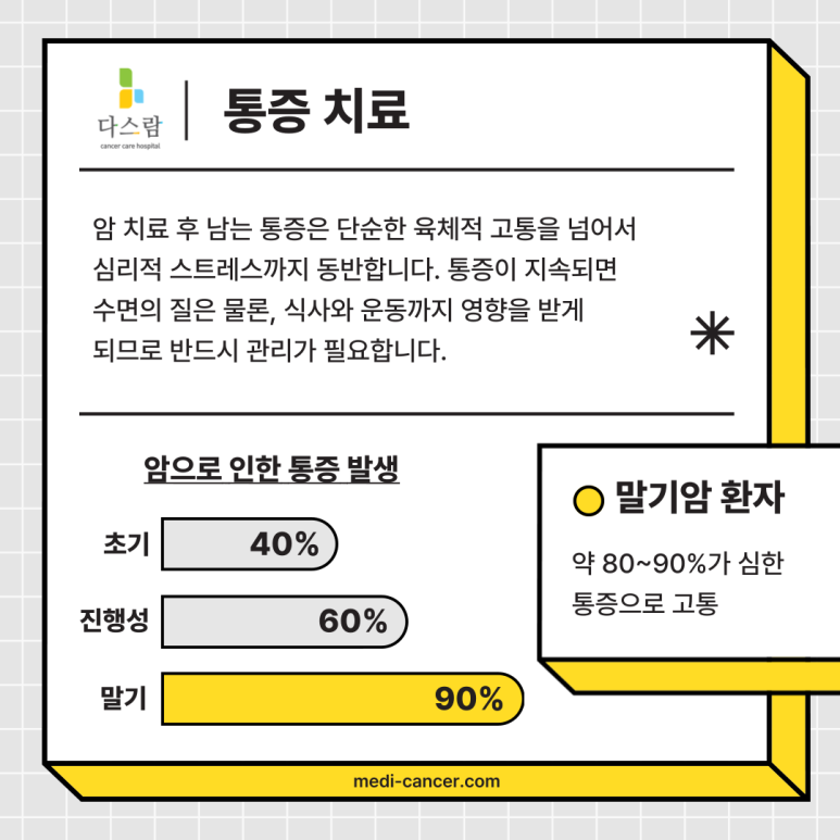 무엇보다 중요한 것은 환자 스스로 자신의 통증을 ‘참지 않고 표현하는 것’입니다. 그래야 상황에 맞는 적절한 대응이 이뤄질 수 있고, 삶의 질 역시 개선될 수 있습니다.