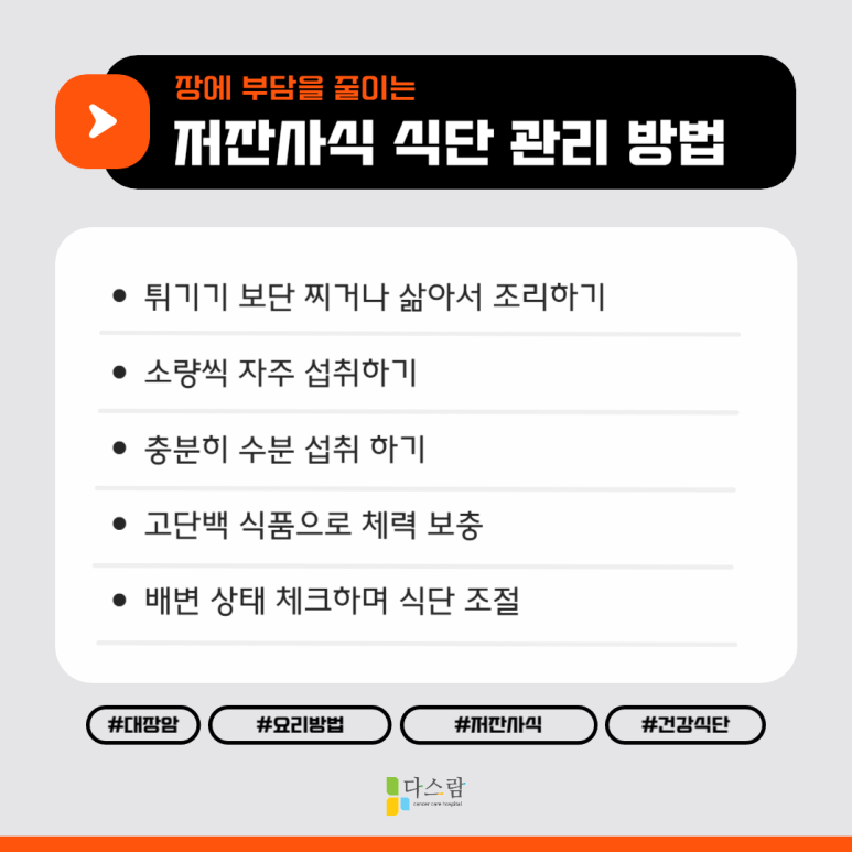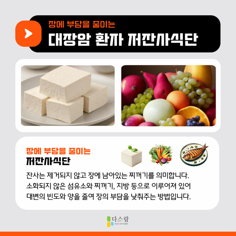 항암치료는 단순히 병원 치료만으로 끝나는 싸움이 아닙니다. 식사 하나하나가 회복과 연결되어 있고, 그 중에서도 저잔사식 식단은 소화기계 부담을 줄이고 삶의 질을 지켜주는 든든한 지원군이 될 수 있습니다.