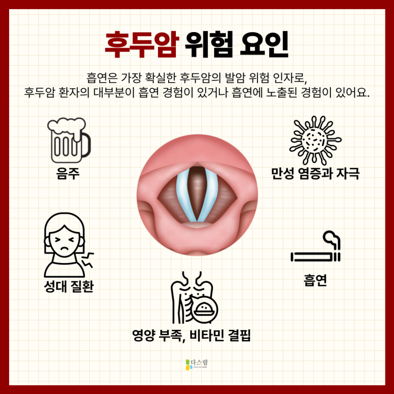 - 음주: 특히 술과 담배를 함께하는 습관은 후두암 위험을 더욱 높이는 요인입니다.