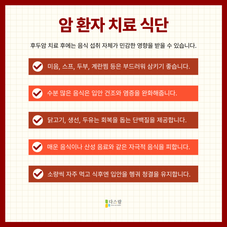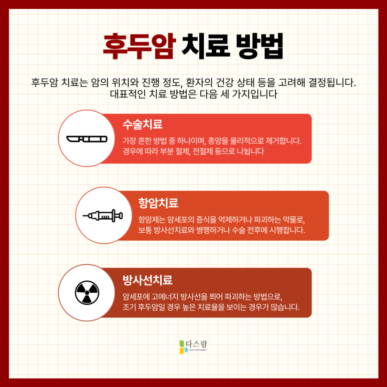 후두암은 무서운 병이지만, 빠르게 발견하고 적절하게 관리하면 충분히 일상 회복이 가능합니다. 특히 통증을 줄이고 삶의 질을 높이기 위해서는, 정기적인 검사와 생활 습관 개선, 식이 조절이 매우 중요합니다.