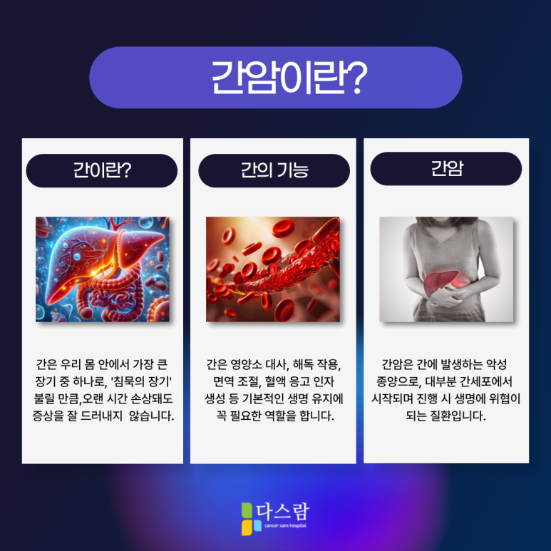 간은 우리 몸에서 가장 묵묵히 일하는 장기 중 하나입니다. 하지만 이처럼 조용한 성격 때문에, 간에 이상이 생겨도 쉽게 알아차리기 어렵죠. 특히 간암은 진행이 빠른 편이라, 자칫하면 진단 시점에는 이미 상태가 많이 진행된 경우도 흔합니다.