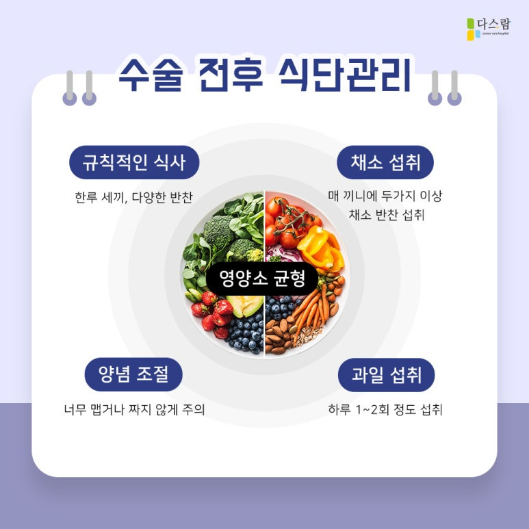 수술 전후 특별한 지시사항이 없다면, 균형 잡힌 식사를 유지하는 것이 중요합니다.