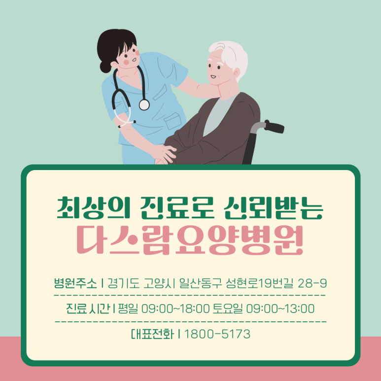 신촌세브란스 근처에 있는 다스람요양병원에서는 이러한 관리를 보다 체계적이고, 적극적인 관리에 도움을 드리고 있습니다.