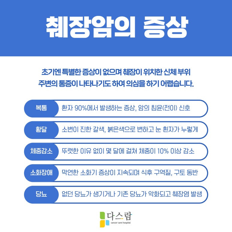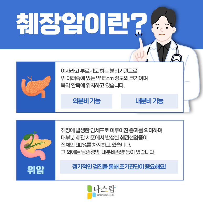 췌장암은 발생 위치에 따라 증상이 다를 수 있으며, 조기 발견이 어려워 예후가 좋지 않은 암 중 하나로 알려져 있습니다. 따라서 췌장암에 대한 이해와 조기 진단의 중요성이 강조되고 있습니다.