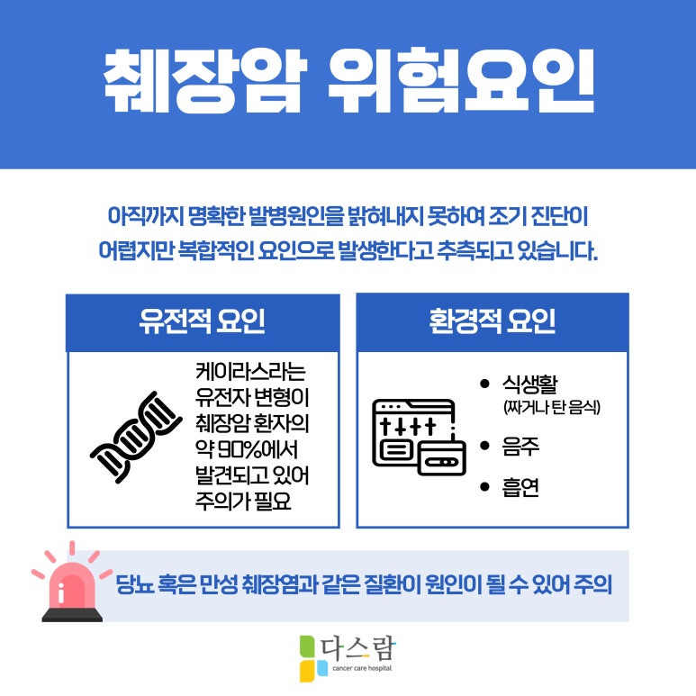 1. 유전적 요인 : 췌장암 환자의 약 5~10%는 유전적 요인과 관련이 있습니다. 췌장암에서 흔히 발견되는 유전자 변형인 케이라스는 암세포의 성장을 촉진하고 항암제에 대한 저항성을 높입니다.