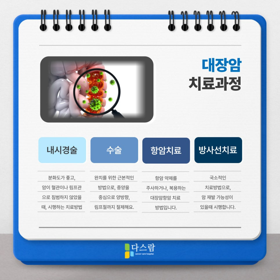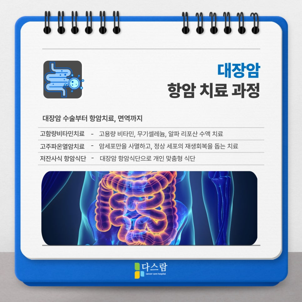 양방과 한방의 협진 체계를 통해 장기 기능 회복, 복부 통증 완화, 면역력 강화, 전신 순환 개선 등 대장암 환자에게 필요한 다양한 치료가 함께 이뤄지며, 여기에 더해 물리치료와 재활치료까지 병행되기도 해요.