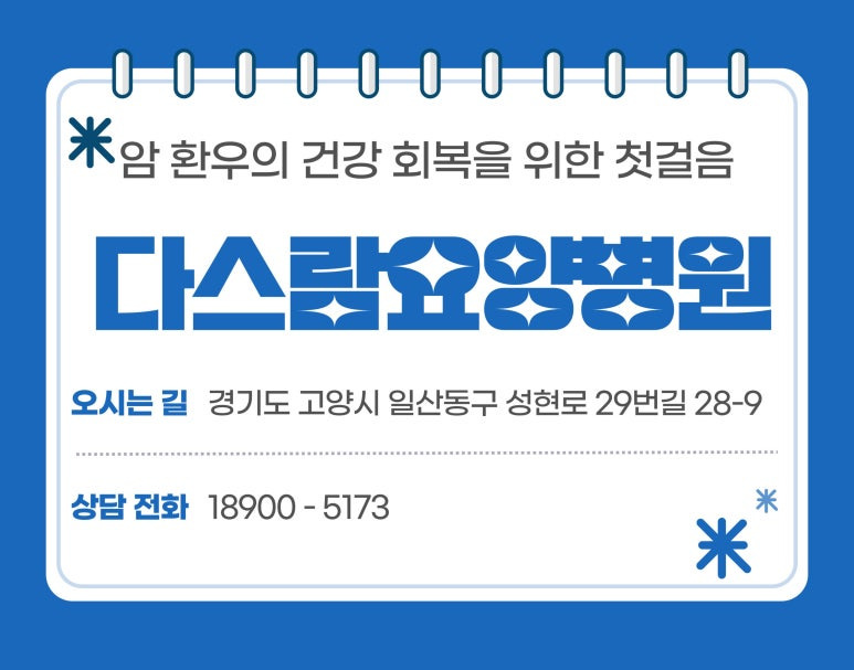 | 항암치료 후 요양, 왜 일산 다스람요양병원이어야 할까?|국립암센터 인접 통합치료 요양병원 (1) | 2025.06.16 |