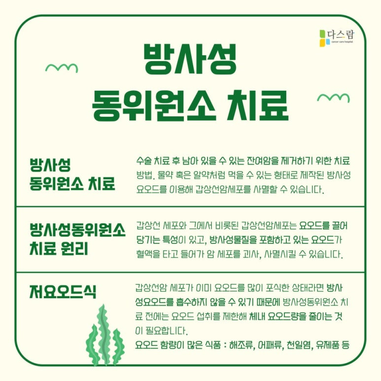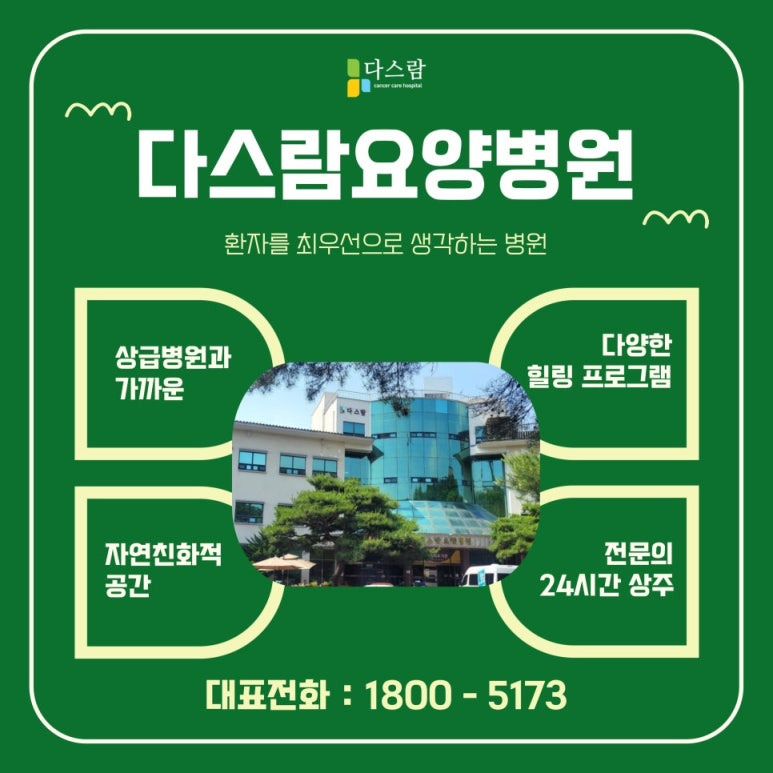 혹시 지금 갑상선암 치료 후 면역력 저하나 회복 관리에 대해 고민하고 계시다면, 전문적인 암 케어 시스템을 갖춘 운정암요양병원 다스람요양병원에서 도움을 받아보시기 바랍니다. 몸과 마음이 건강을 되찾는 그 여정을, 저희가 함께하겠습니다.