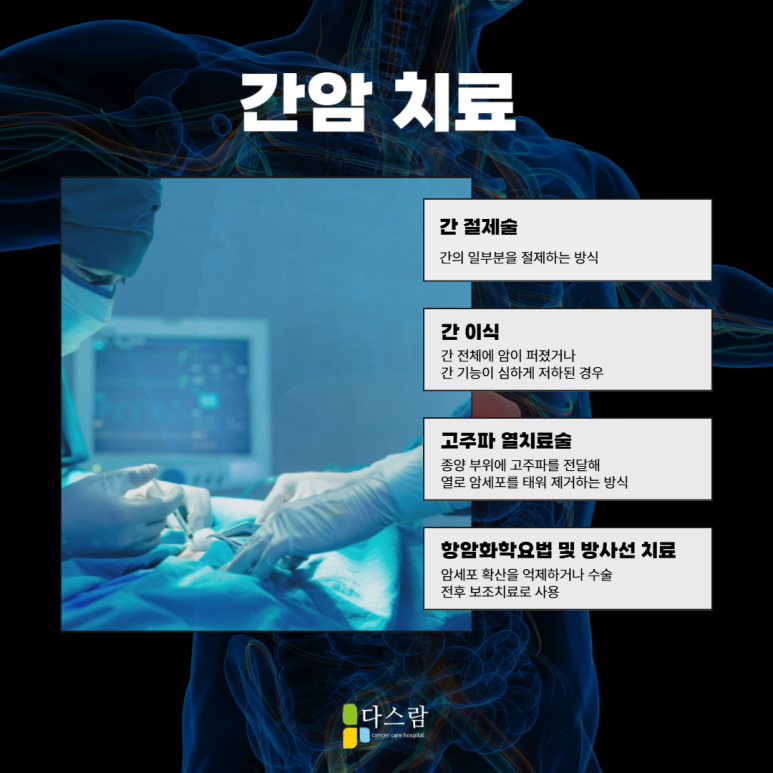 간 전체에 암이 퍼졌거나 간 기능이 심하게 저하된 경우에는 간이식이 필요한 경우도 있어요.