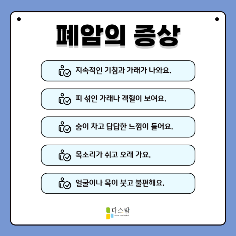 폐암 수술 이후 체계적인 회복과 정서적 안정이 필요하다면 암환자요양병원인 다스람요양병원에서 그 해답을 찾을 수 있습니다.