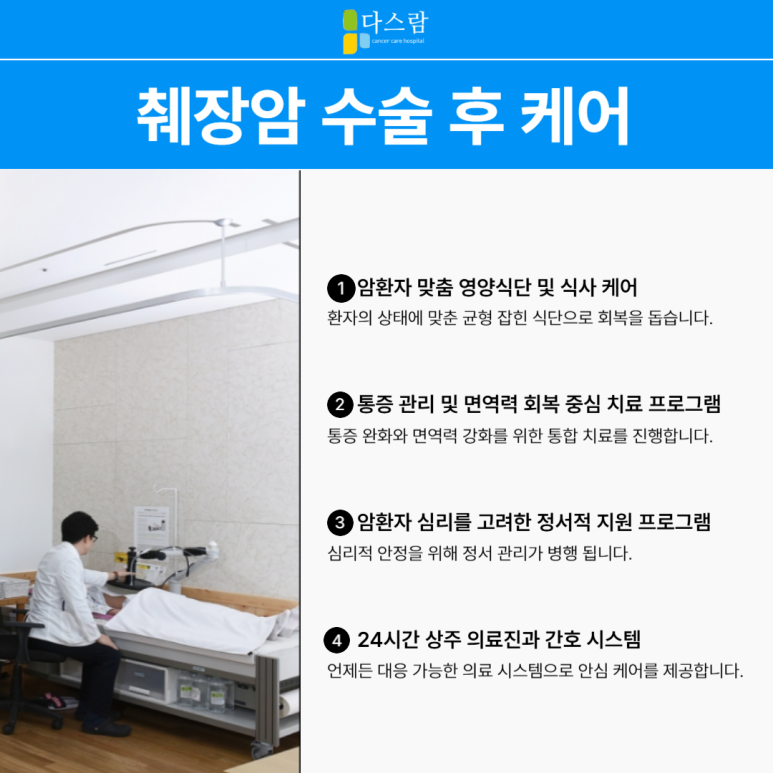 이 때문에 수술 후에는 췌장암 회복 경험이 풍부한 요양병원의 케어가 매우 중요합니다.
