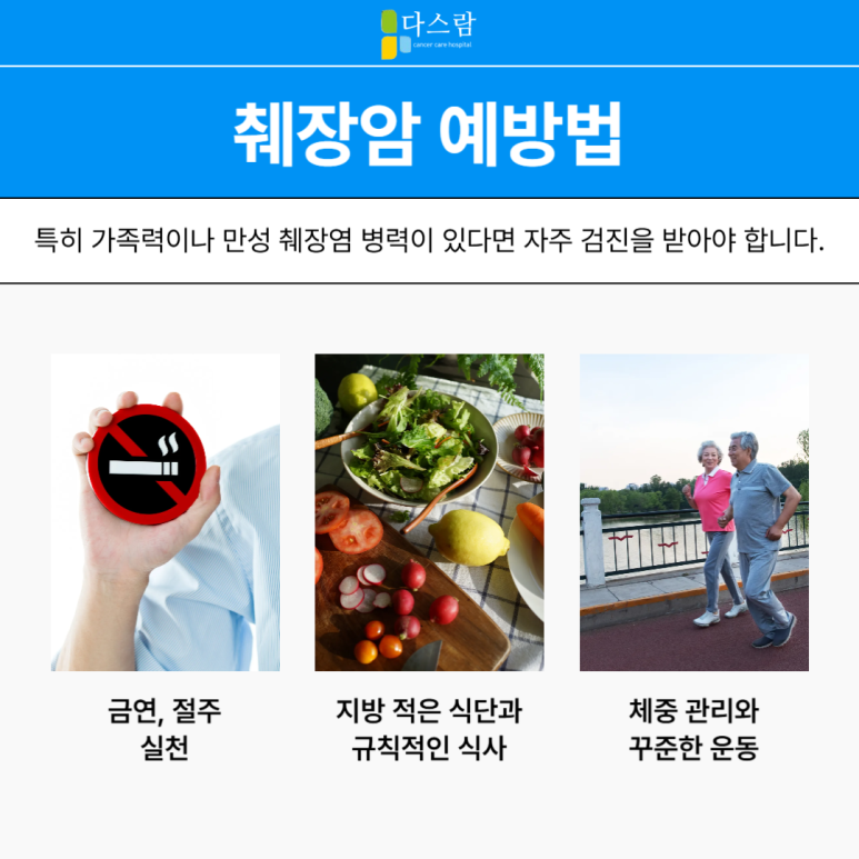 - 정기적인 건강검진으로 복부 초음파, 혈액검사 체크