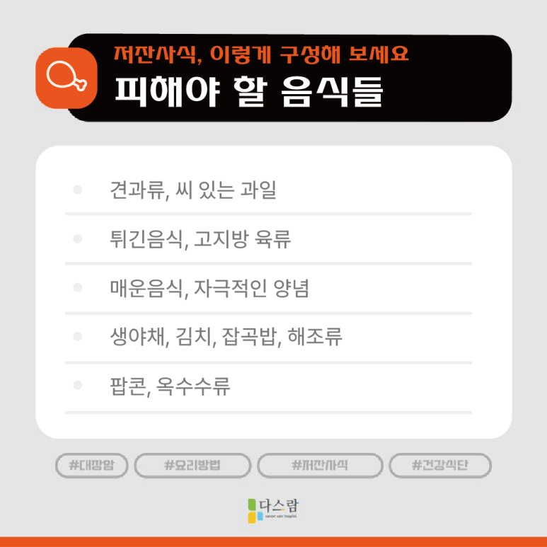대장암 회복기의 핵심 식사법 저잔사식단