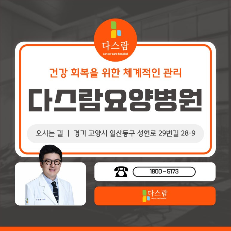 대장암 치료 후 건강을 회복하기 위해서는 체계적인 관리와 적절한 치료가 반드시 필요합니다. 다스람요양병원에서는 통합암면역치료를 중심으로, 환자분들이 보다 건강하게 회복할 수 있도록 다양한 프로그램을 운영하고 있어요.