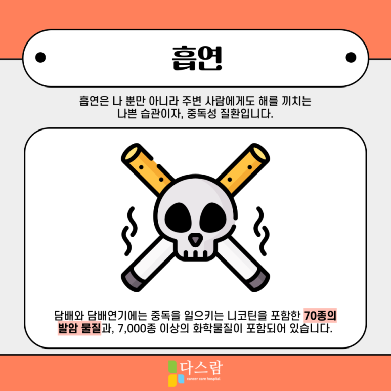 암을 예방하고 싶다면 가장 먼저 실천할 수 있는 게 바로 금연이라는 점, 기억해주세요!