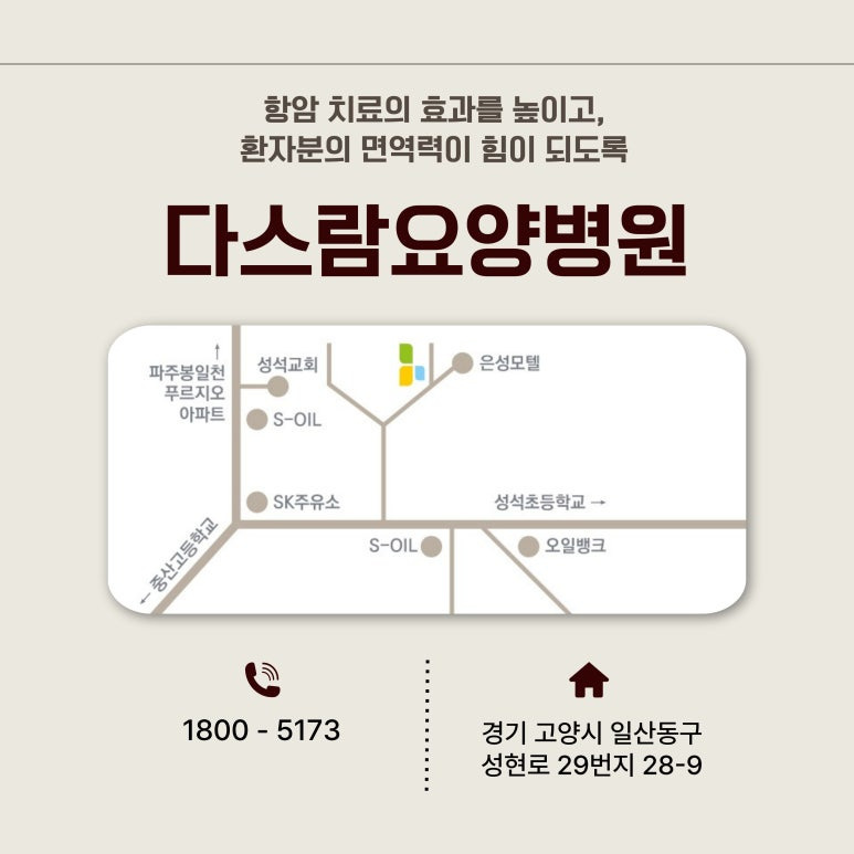 간암 이외에도 다양한 암종과 치료 이후의 회복에 문의가 있으신 경우 내원하여 상담받아보시기 바랍니다.