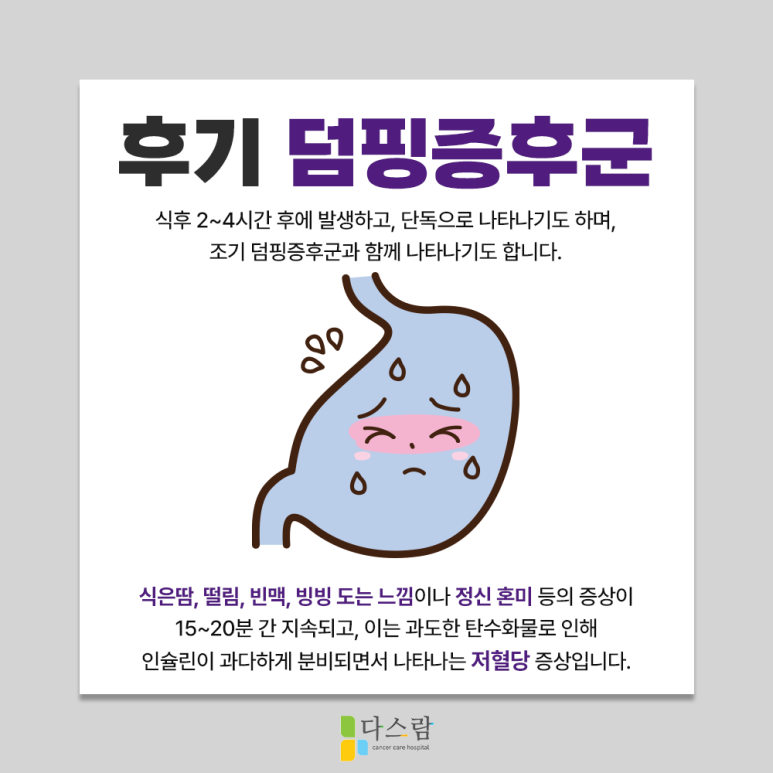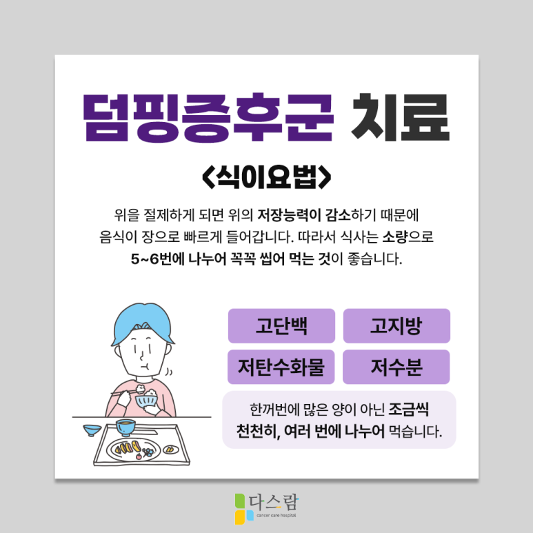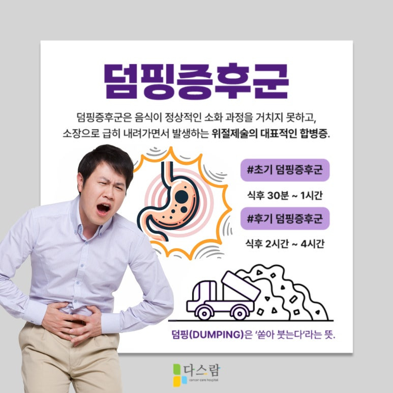 덤핑증후군은 위암 수술 후 상당수 환자분들이 경험하는 문제이지만, 올바른 식습관 관리와 체계적인 영양 케어를 통해 증상을 완화할 수 있습니다.