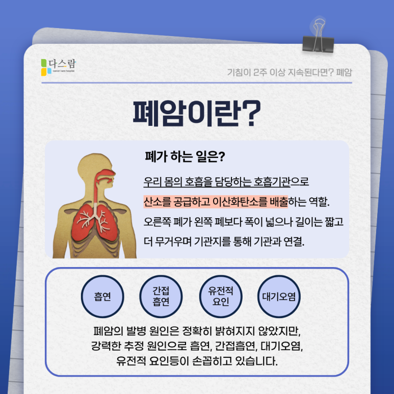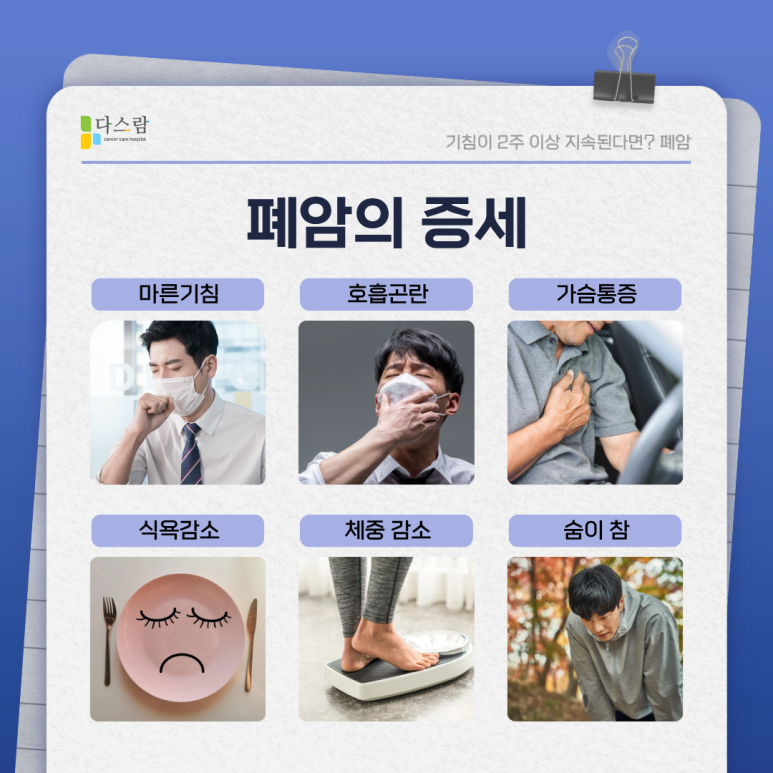 오늘은 저희 다스람요양병원과 함께 폐암이 진행되는 나타나는 증상이 무엇인지 알아보고, 회복을 위한 관리방법에 대해 알아보려고 해요.