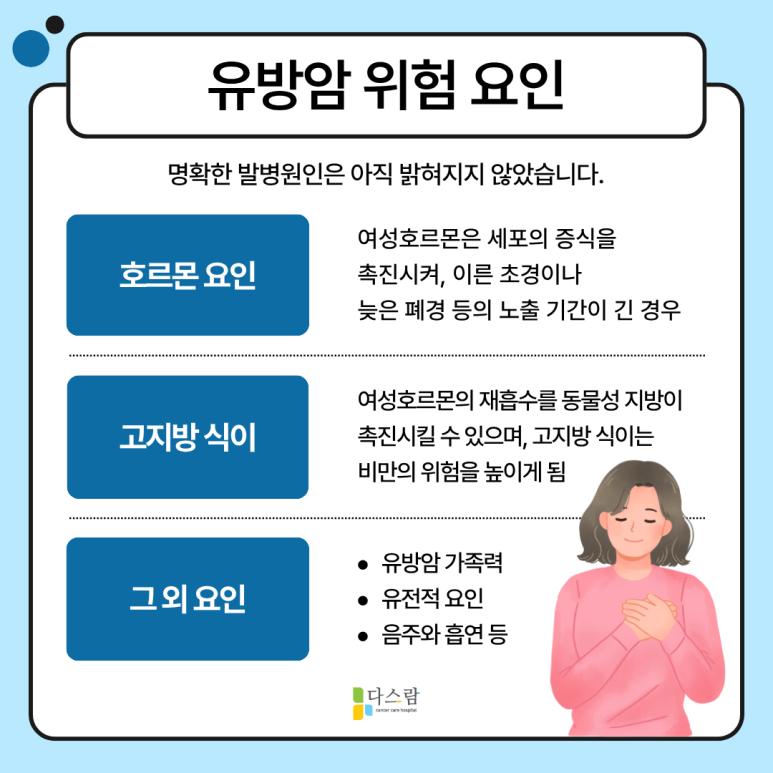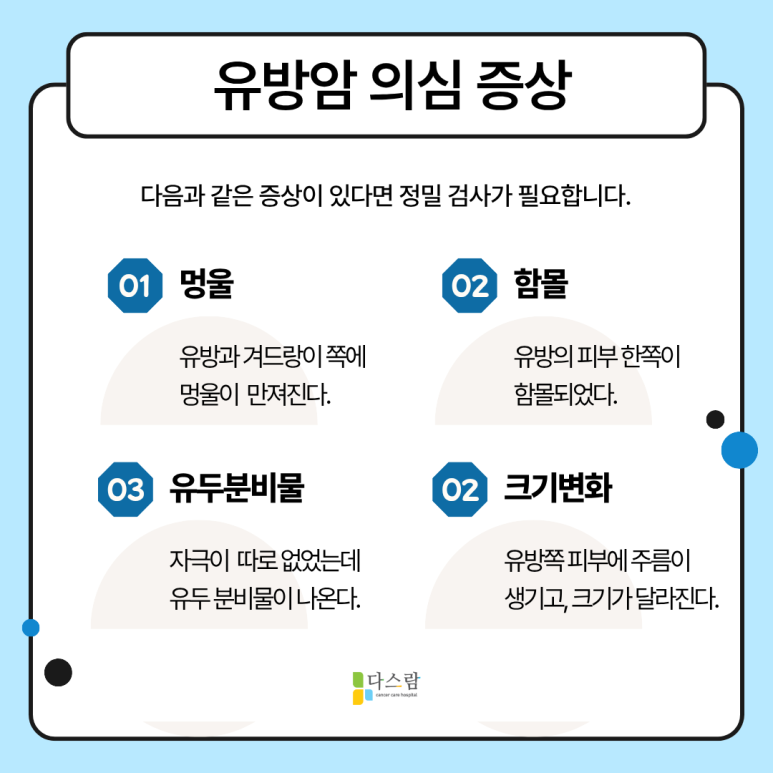 유방암요양병원을 대표하고 있는 저희 다스람요양병원에서는 유방암수술후요양병원 역할을 수행하며, 체계적인 면역력 관리 치료 프로그램을 통해 최선을 다해 회복을 도와드리고 있는데요, 오늘은 유방암과 수술 후 면역력 관리의 중요성에 대해서도 자세히 알아보도록 할게요.