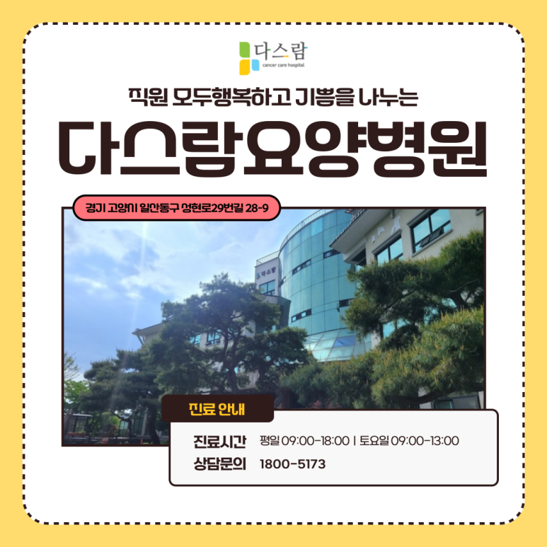안녕하세요 경기암요양병원 다스람병원입니다.
