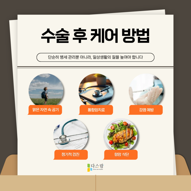 폐암은 종양이 폐 조직 내에서 자라나 호흡에 직접적인 영향을 주기 때문에, 치료 과정에서 체력 소모가 심하고 면역력 저하가 동반될 수 있어요. 따라서 치료 이후에는 단순한 휴식이 아니라, 의학적 관리와 면역 회복이 병행되는 요양 환경이 필요하게 되죠.