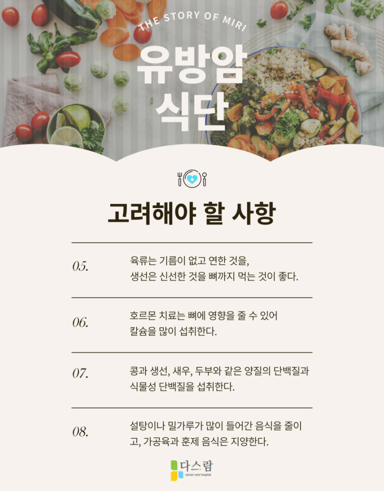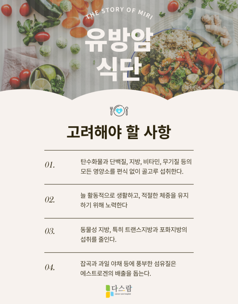 유방암 환자를 위한 식단을 구성할 때 고려해야 할 사항
