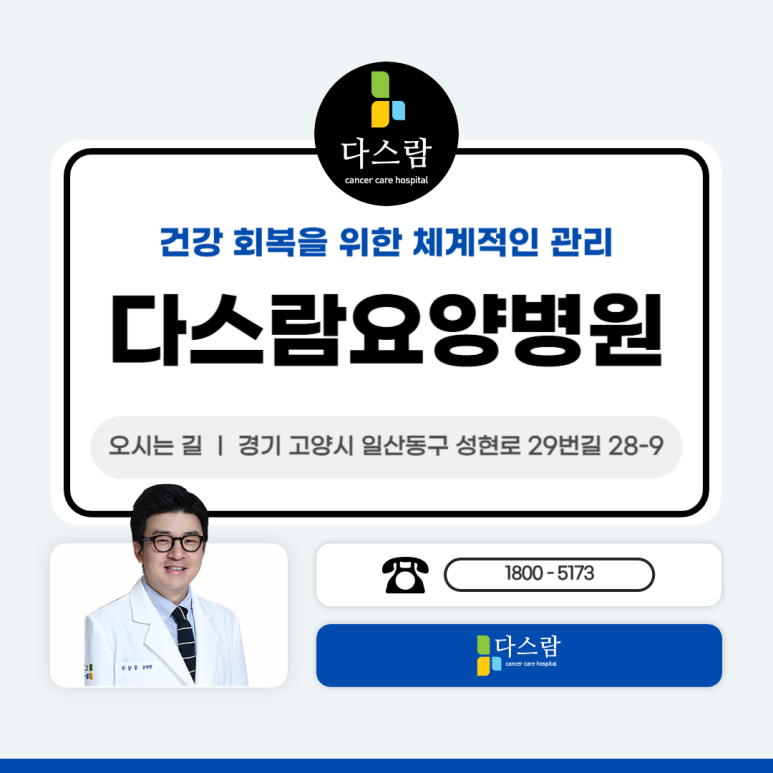 유방암 전이증상은 조기에 대응할수록 예후가 달라질 수 있으며, 다스람요양병원에서는 온열면역치료를 비롯한 맞춤 통합 관리로 환자분의 면역력 회복과 삶의 질 향상을 돕고 있습니다.