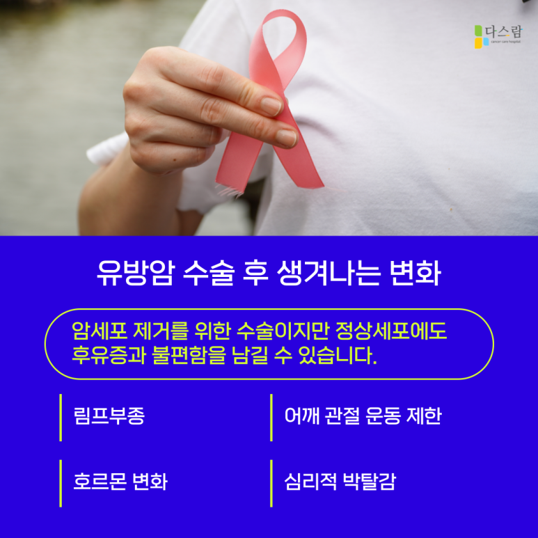 유방암은 조기 발견과 치료로 충분히 관리 가능한 질환이지만, 치료 이후에도 전이에 대한 경계심을 유지하고 꾸준한 관리가 진행해야 합니다.