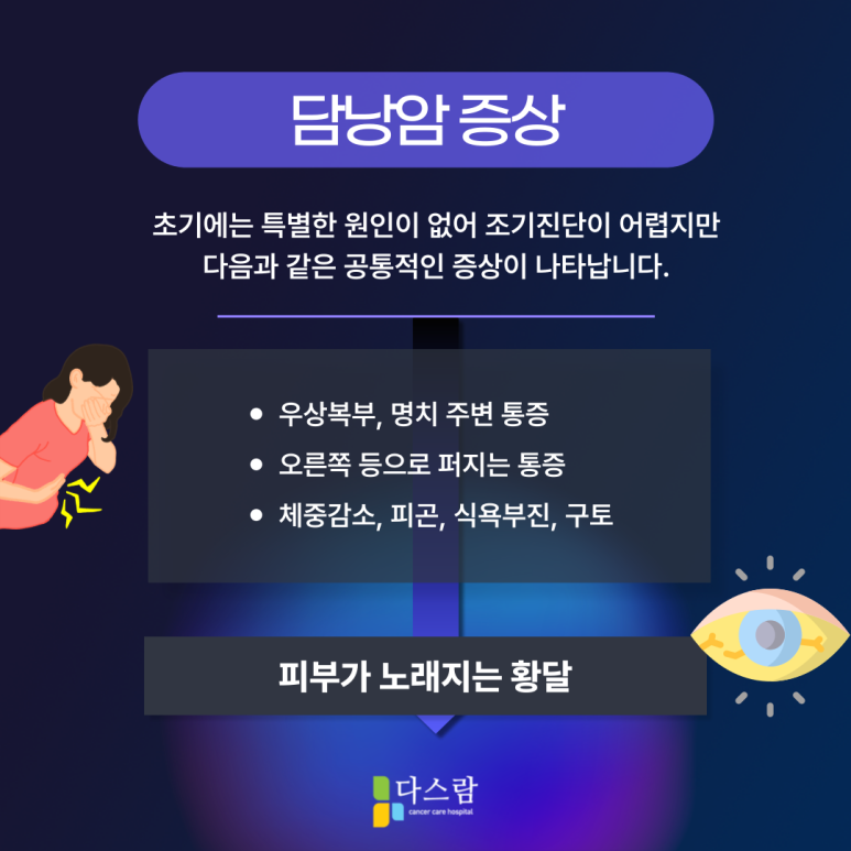 특히 담낭암의 경우에는 초기 증상이 거의 없어 암이 어느 정도 진행된 뒤에야 통증이나 불편감이 나타나는 경우가 많기 때문에, 세심하게 관찰하는 것이 중요한데요.