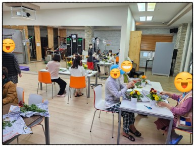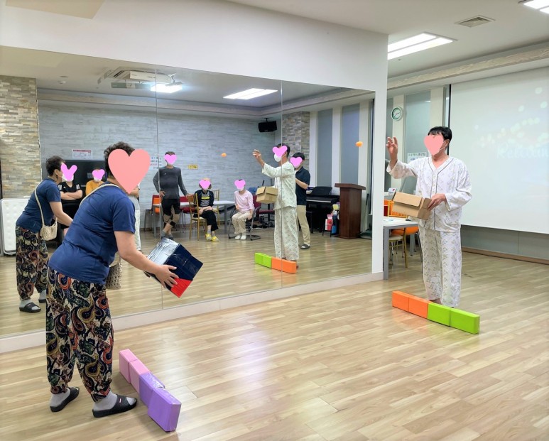 운동치료, 웃음치료, 음악, 미술치료, 천연 아로마 수업과 만들기 공예 수업, 외부 나들이, 종교 활동, 다스람 파티 등을 시행해요.