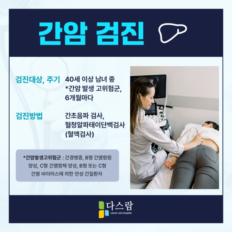 초기에는 특이 증상이 없지만 피로나 식욕부진 그리고 체중이 감소하는 경우 정밀한 검사를 받아볼 필요가 있다고 해요. 또한, 국가에서는 만 40세 이상 중 고위험군에 속한다면 1년에 2차례 초음파와 혈청 아파태아단백 검사를 진행하게 된다고 합니다.