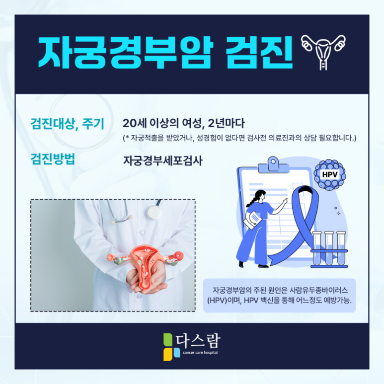 그렇기 때문에 만 20세 이상 여성이라면 2년 주기로 자궁경부 세포검사를 받는 것이 좋았는데요. 이 때 생리혈은 정확한 진단을 방해하는 요소가 되었기 때문에 생리 이후 배란 전에 진행하는 것을 권해드리고 있다고 해요. 또한, 이를 예방하는 방법 중 하나는 해당 바이러스의 예방 접종으로 만 12세 이상 여성이라면 누구나 무료로 받을 수 있다고 해요.